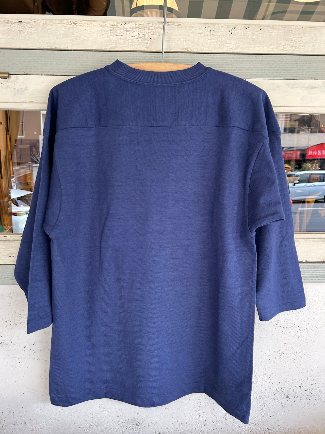ボディ生地は12番ムラ糸を使っており、一度お洗濯することにより縮みが出ますのでノンウォッシュの時より生地のスラブ感が出て柔らかい風合いになります。着心地もとてもいいですよ。