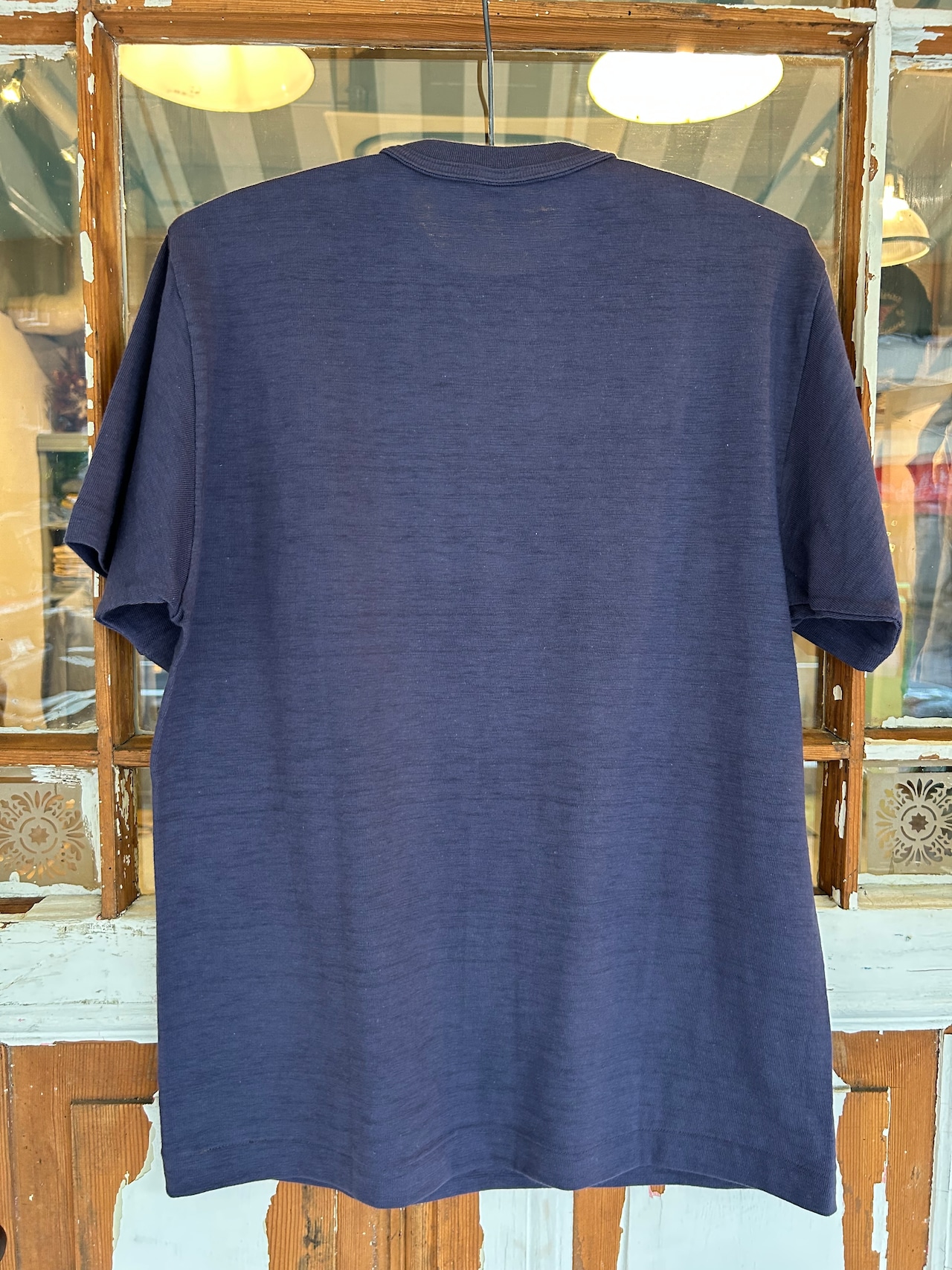 12番のムラ糸で独特の陰影が出るように編まれた生地はシャドウボーダーと呼ばれており、無地でありながらうっすらと横段のようなムラが浮かび上がります。