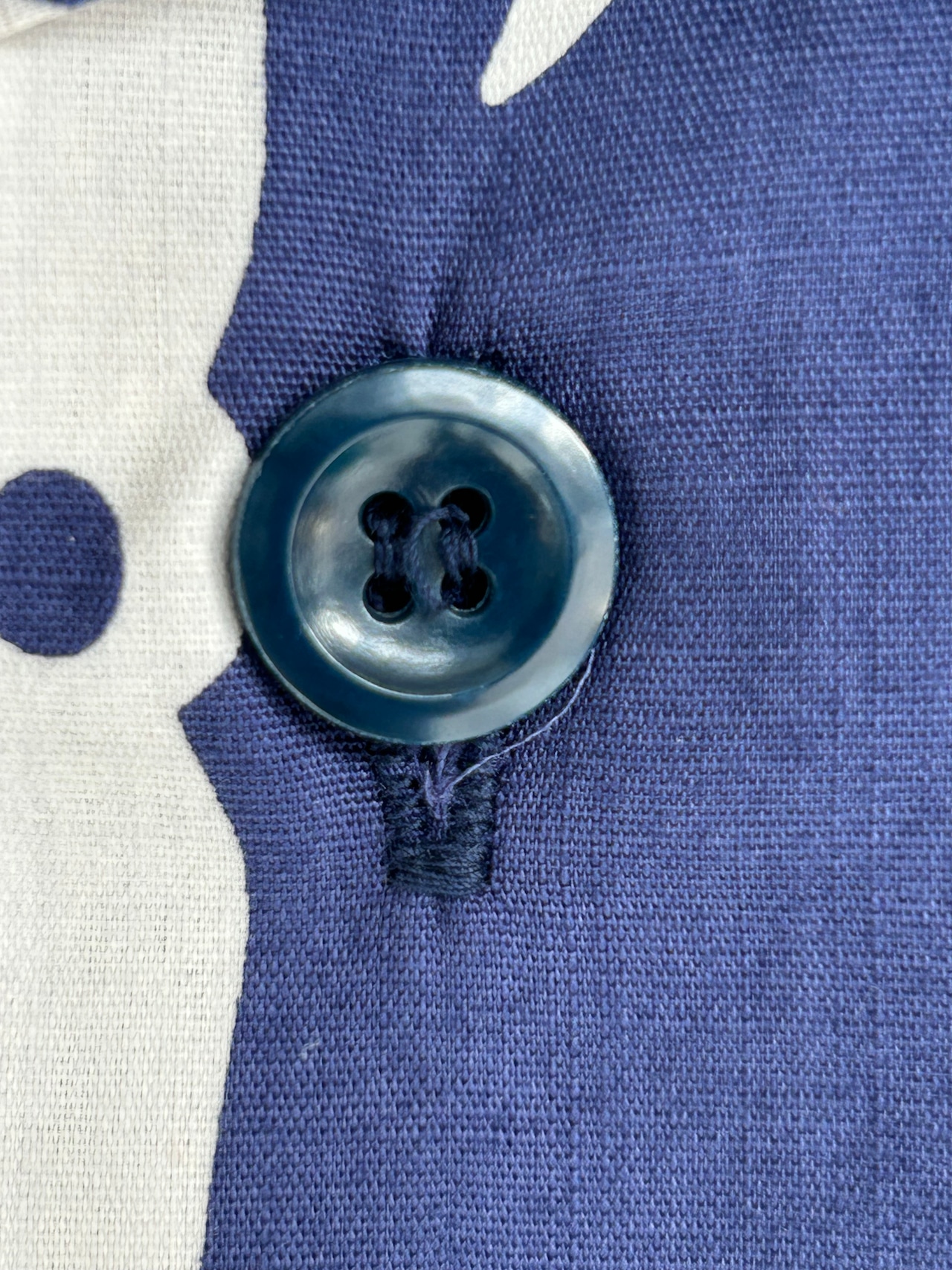 クラシックなポーズでジャンプする雄大なカジキのプリントが施されたヴィンテージシャツをベースにしています。ネイビーとホワイトのプリントは大胆でシャープな印象ですね。