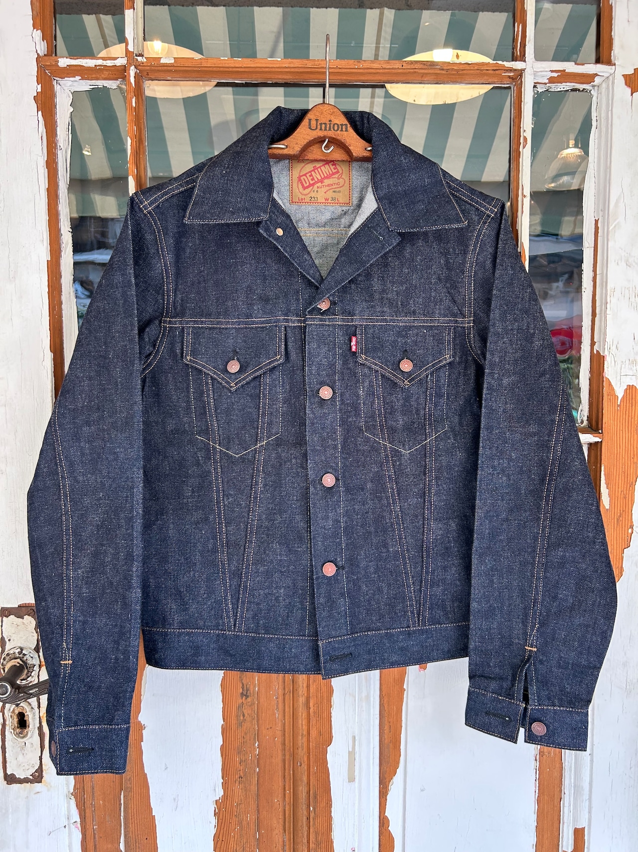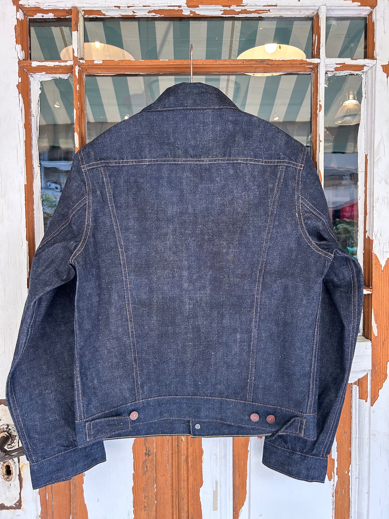1953年に製造されたリング精紡機である「石川台」を使用し、世界初のデニム用「ラフィ」を紡績して作られたデニム。自然なムラ糸の特徴は紡績からGL-3での製織によって生地にそのまま生かされています。