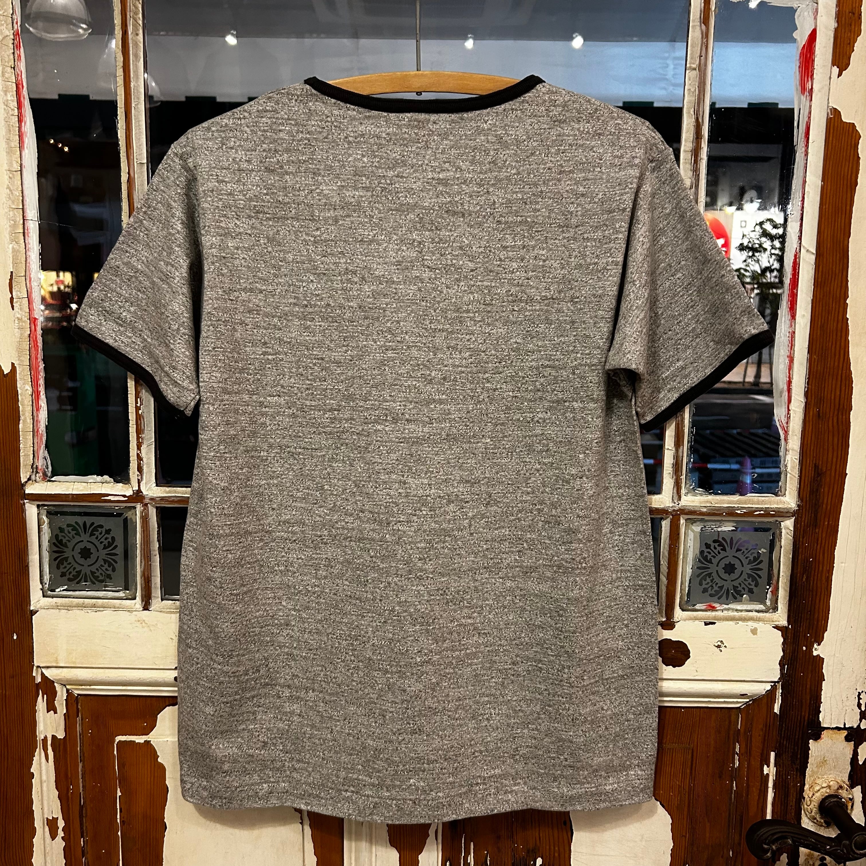 12番のムラ糸で独特の陰影が出るように編まれた生地はシャドウボーダーと呼ばれており、無地でありながらうっすらと横段のようなムラが浮かび上がります。