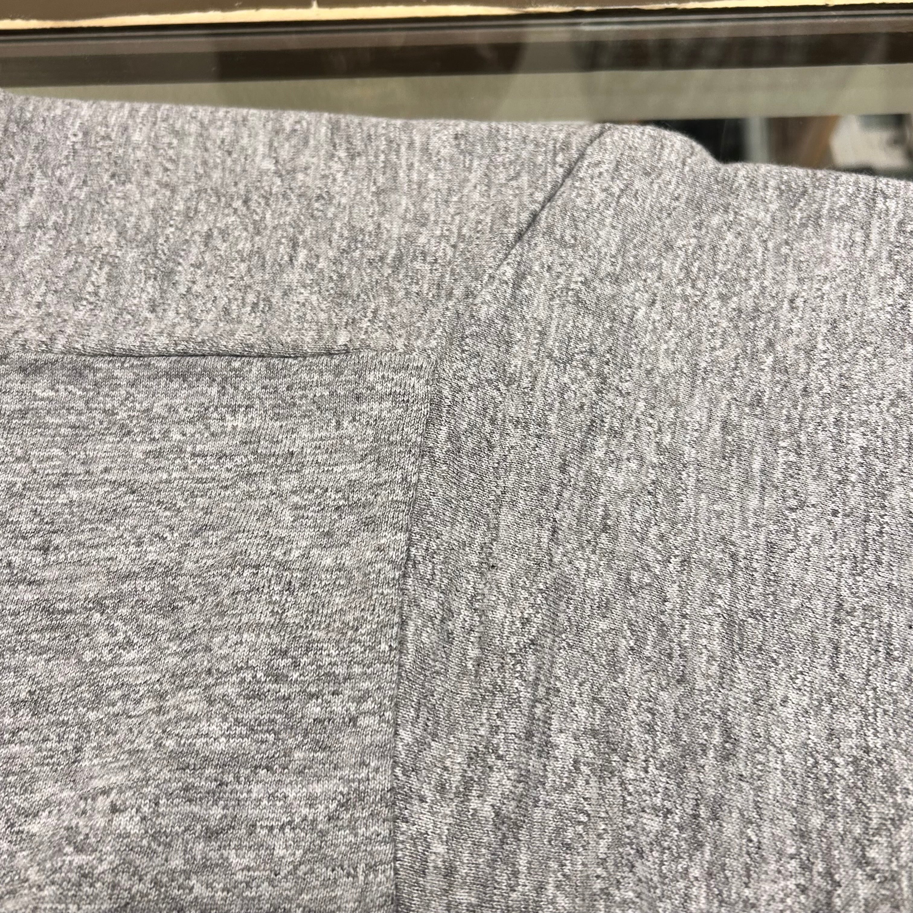ボディ生地は12番ムラ糸を使っており、一度お洗濯することにより縮みが出ますのでノンウォッシュの時より生地のスラブ感が出て柔らかい風合いになります。着心地もとてもいいですよ。