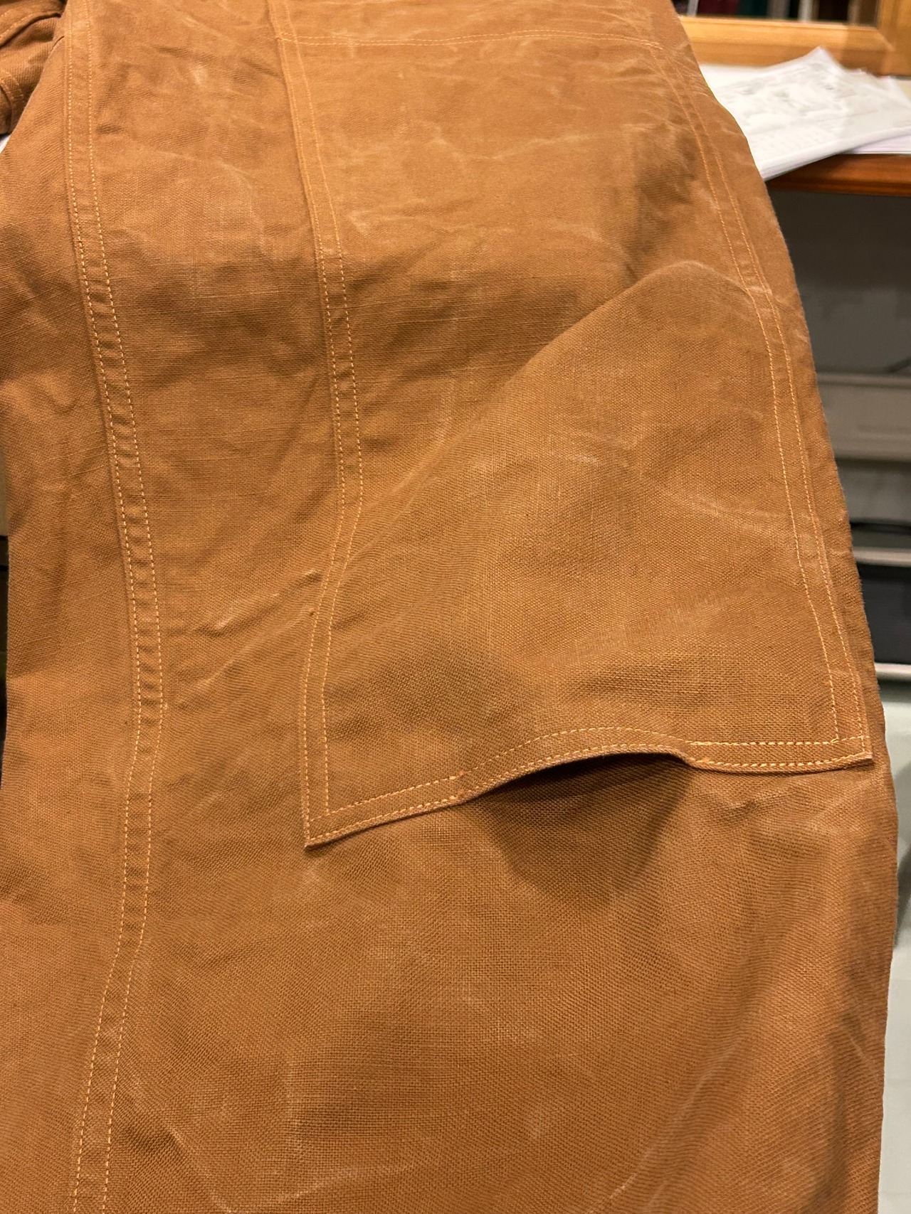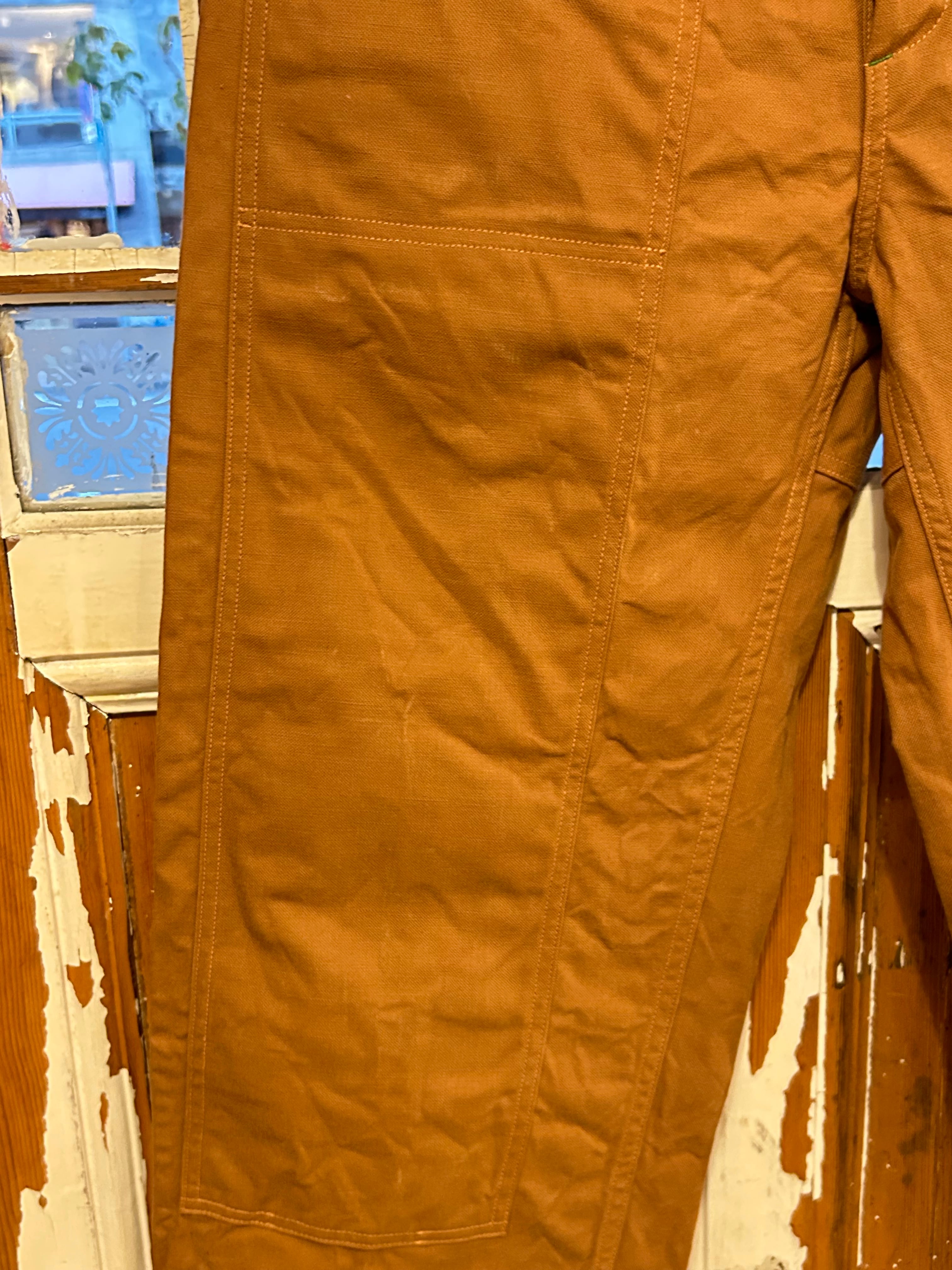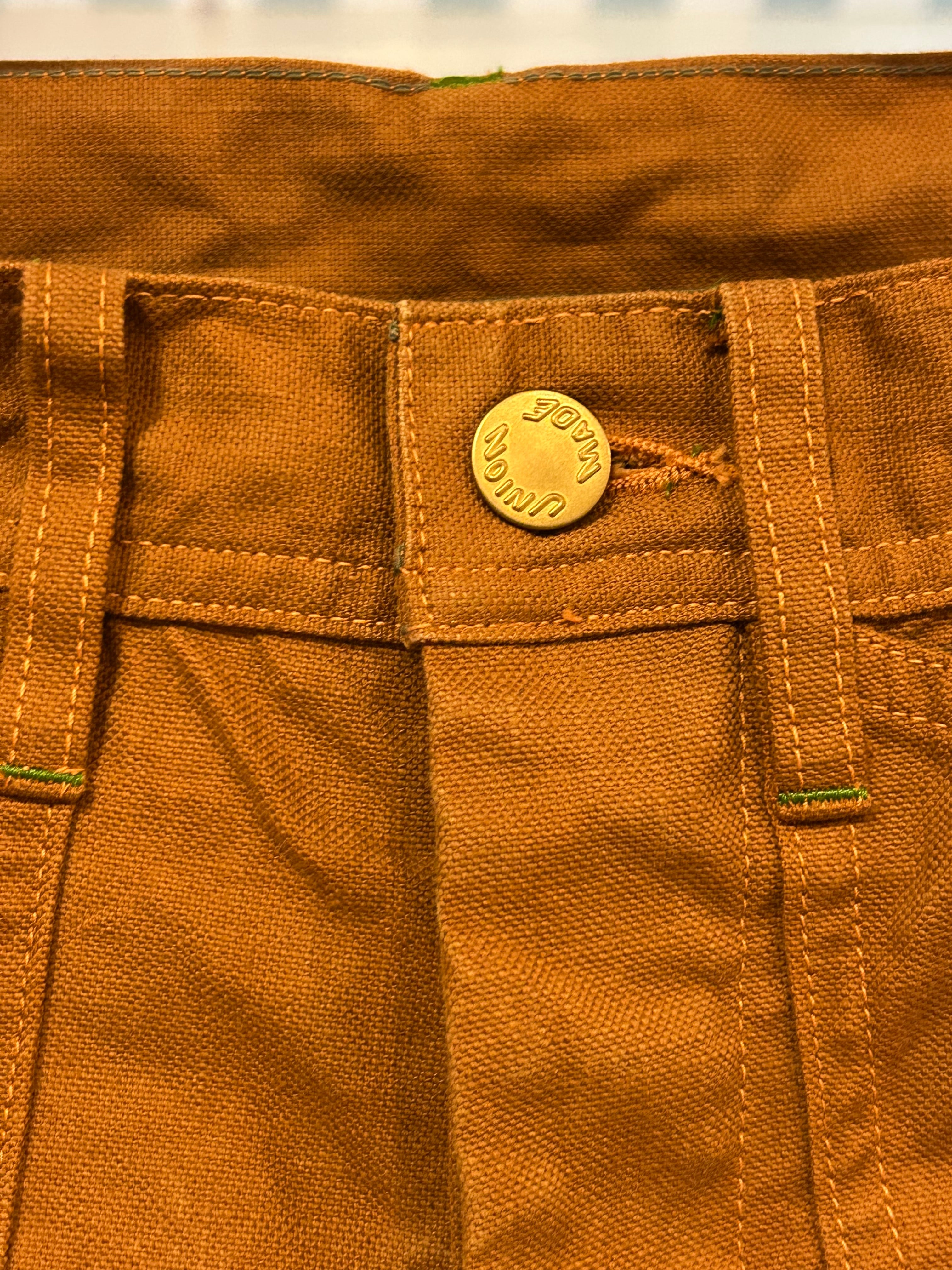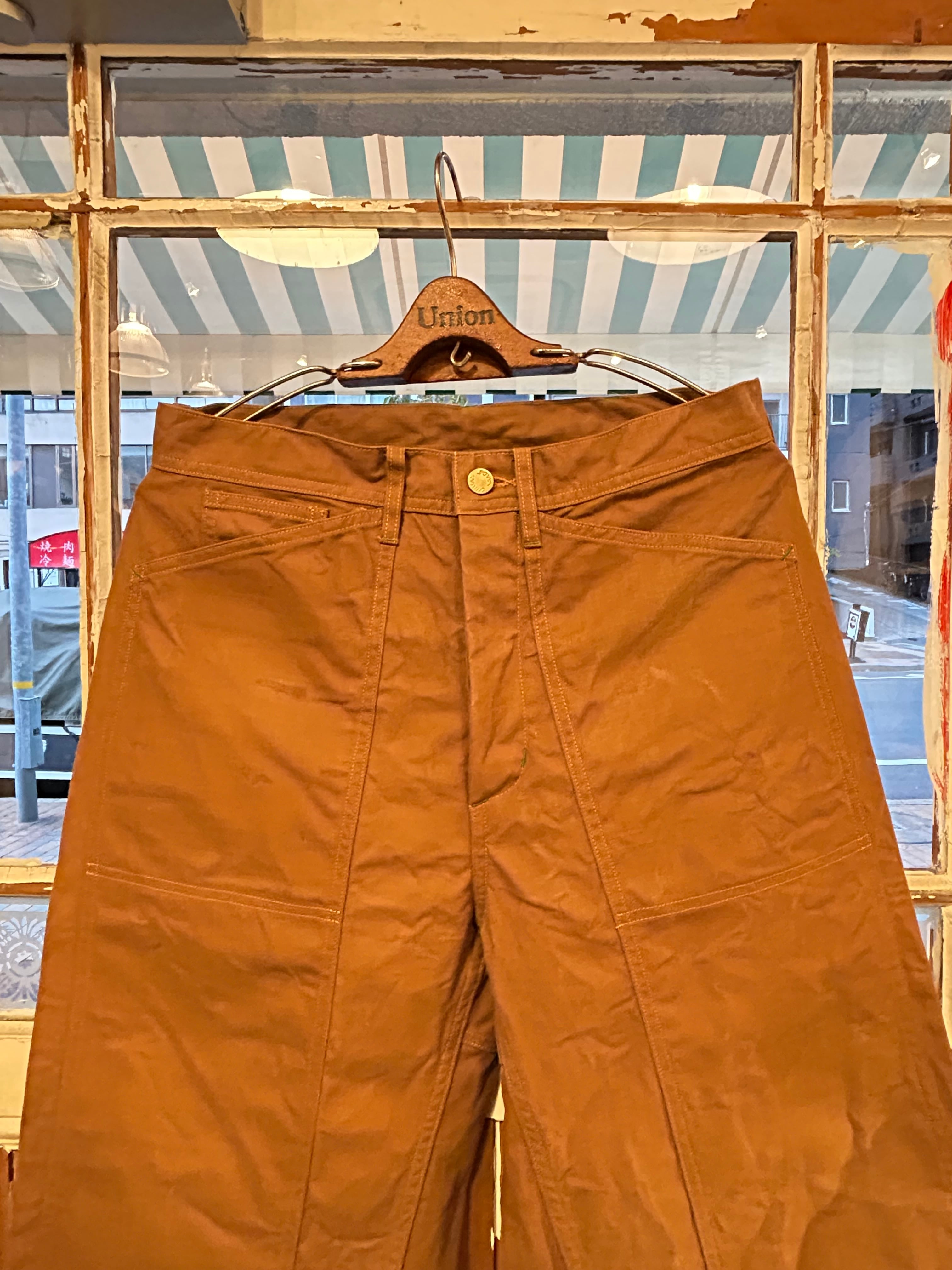 1930年代後期から1940年代初頭の一時期に実在した滅多にお目にかかれないL社の4シリーズのペインターパンツをベースにして3シリーズの特徴でもあるダブルステッチ縫製にてDURA-BILTの解釈として作り上げたペインターパンツとなります。フロントはダブルニー、ヒップは一見構造が理解しづらいダブルヒップの二重構造仕様が特徴となります。3シリーズ初期の特徴でもある角形ポケット、そして初期型のみに備わる緑カンヌキ、16.8ミリのUNION MADEボタン。当時物と同じ鉄製ツープロング仕様で3シリーズとして実在していてもおかしくないインスパイアモデルとしてDURA-BILTネームで仕上げています。