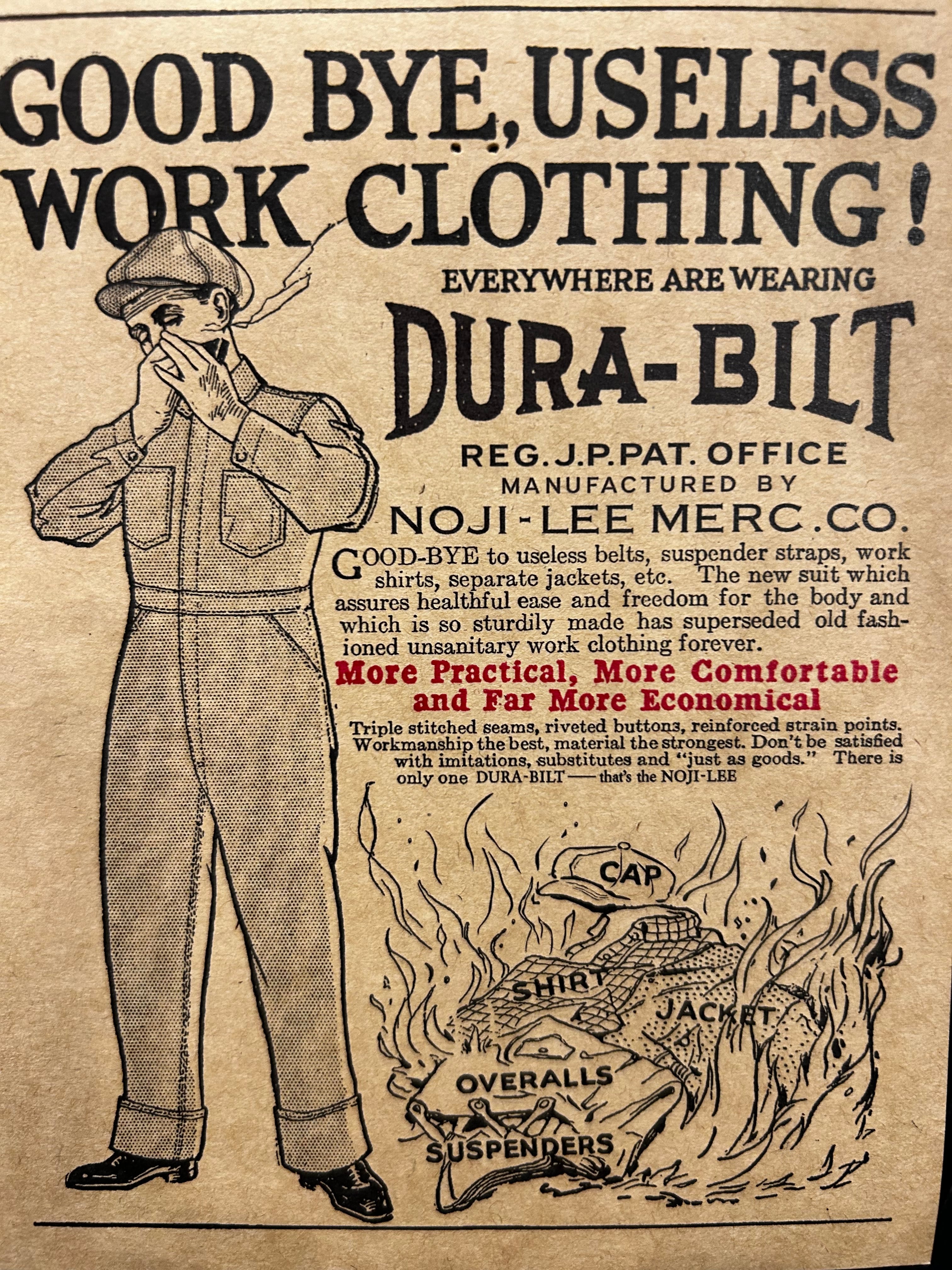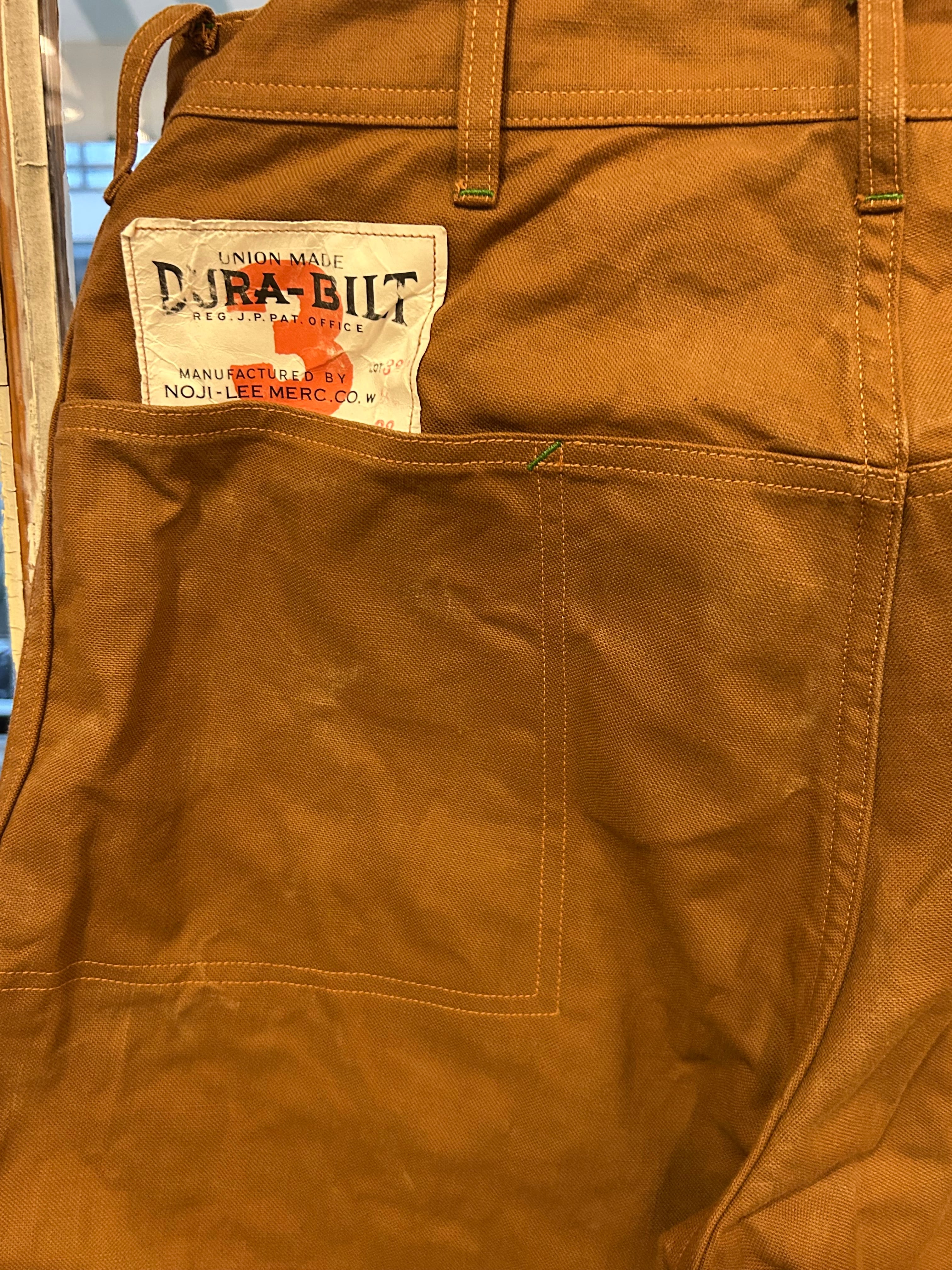 1910年代に誕生し1930年代にその姿を消してしまう、知る人ぞ知る幻のワークブランドDURA-BILT。一部HD Leeの廉価版と評されることもあるが、当時のカタログなどを見るとHD Leeと同価格の製品もある。DURA-BILTならではのデザインに惹かれるコアなvintage好きからの支持も多い。