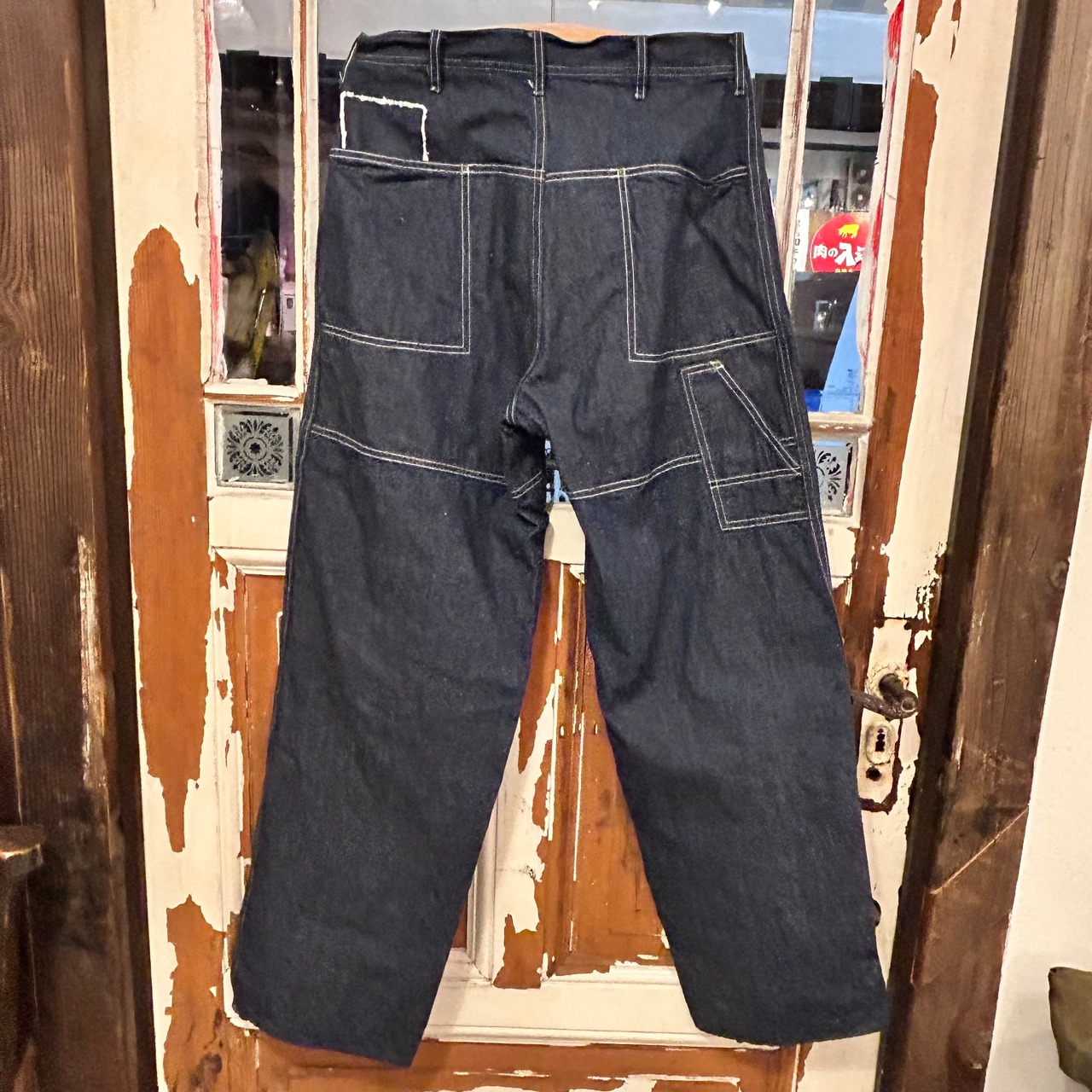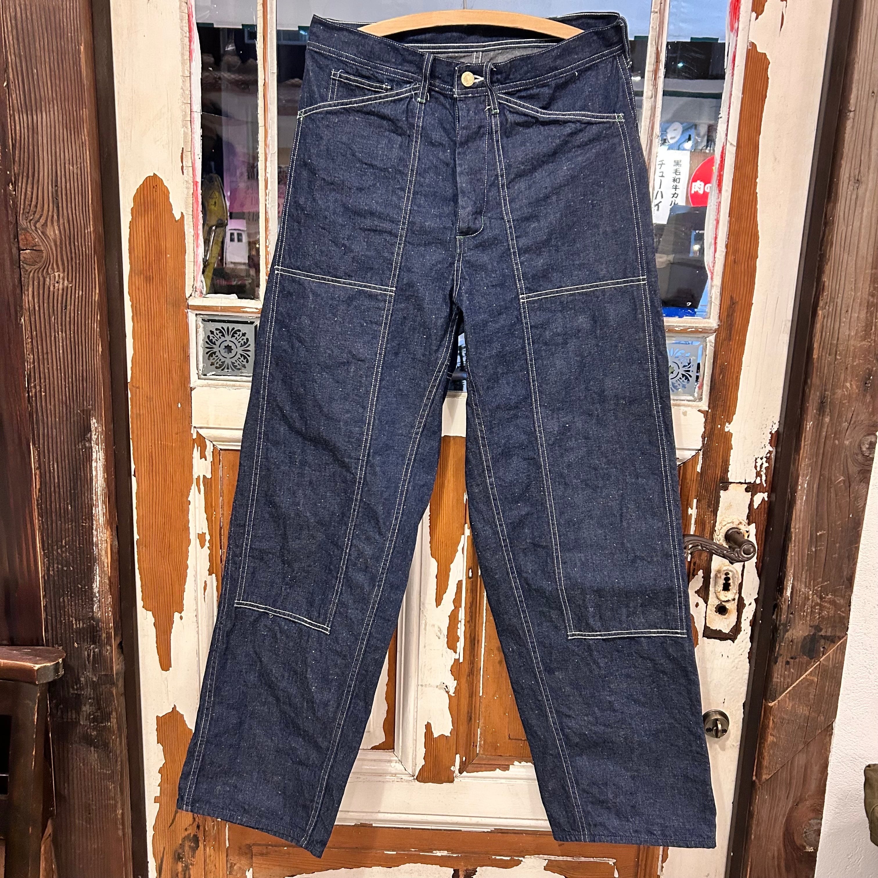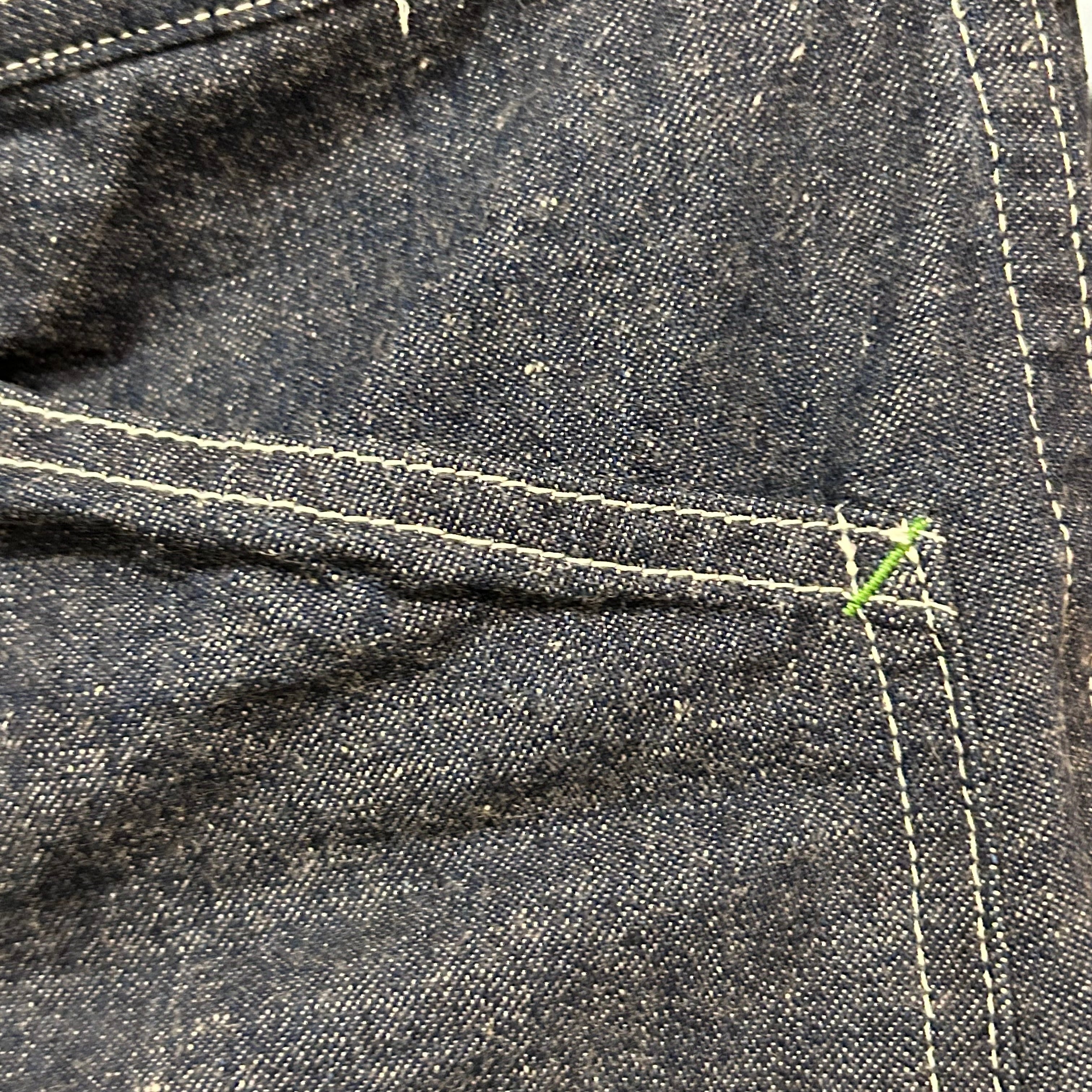 1930年代後期から1940年代初頭の一時期に実在した滅多にお目にかかれないL社の4シリーズのペインターパンツをベースにして3シリーズの特徴でもあるダブルステッチ縫製にてDURA-BILTの解釈として作り上げたペインターパンツとなります。フロントはダブルニー、ヒップは一見構造が理解しづらいダブルヒップの二重構造仕様が特徴となります。3シリーズ初期の特徴でもある角形ポケット、そして初期型のみに備わる緑カンヌキ、16.8ミリのUNION MADEボタン。当時物と同じ鉄製ツープロング仕様で3シリーズとして実在していてもおかしくないインスパイアモデルとしてDURA-BILTネームで仕上げています。