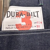 1910年代に誕生し1930年代にその姿を消してしまう、知る人ぞ知る幻のワークブランドDURA-BILT。一部HD Leeの廉価版と評されることもあるが、当時のカタログなどを見るとHD Leeと同価格の製品もある。DURA-BILTならではのデザインに惹かれるコアなvintage好きからの支持も多い。