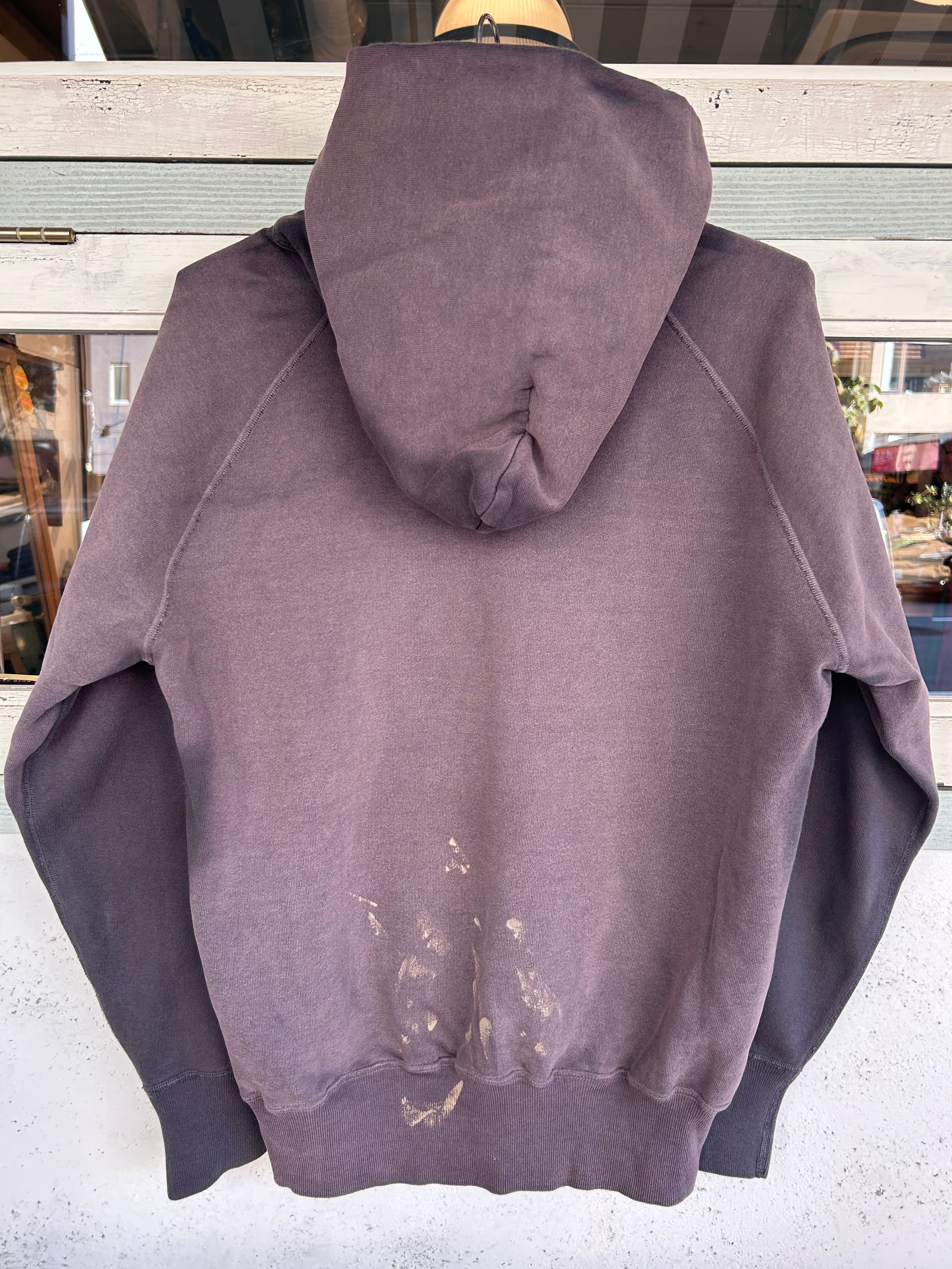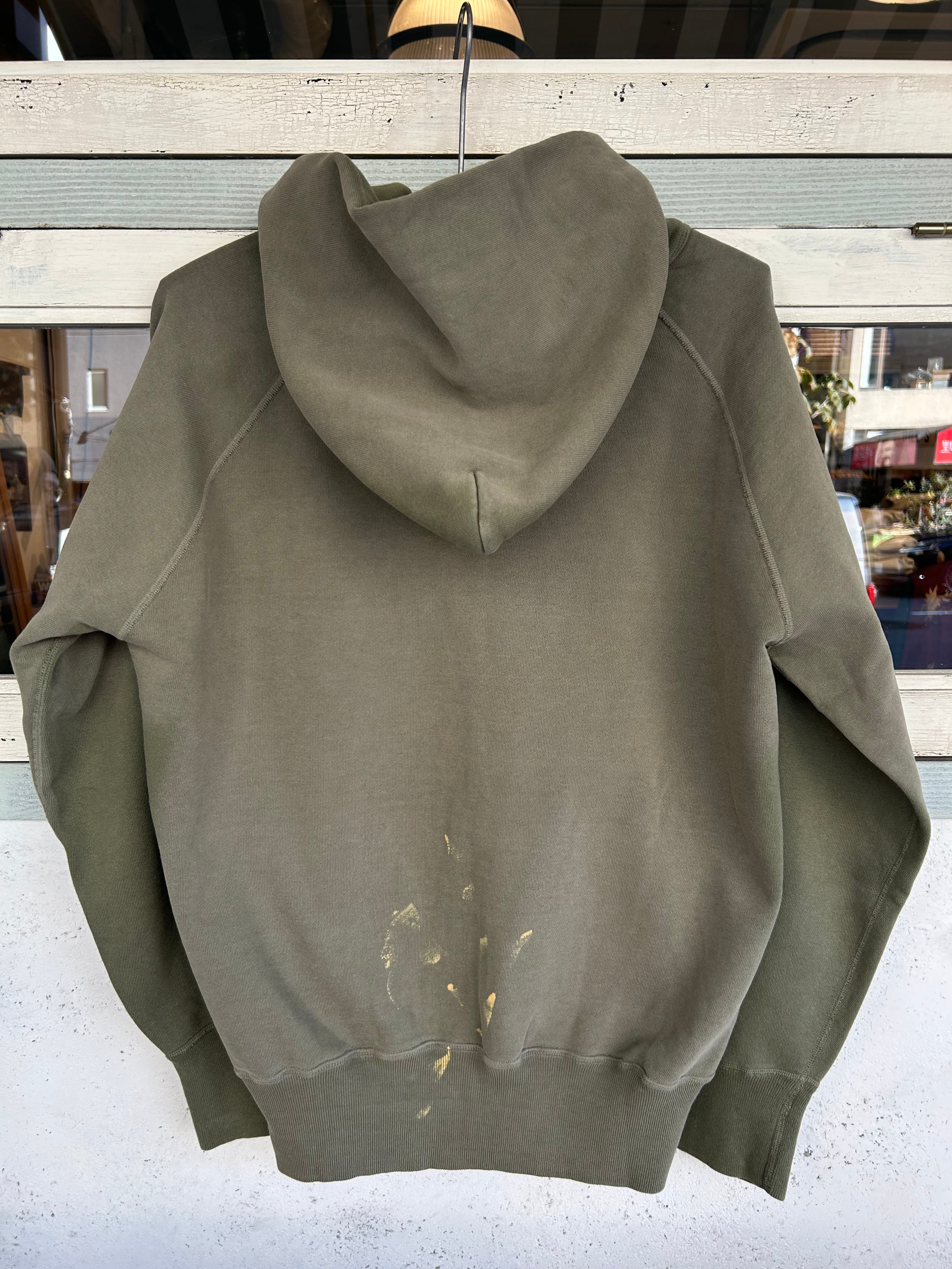 新品なのに古着感たっぷりの2ND-HANDシリーズ、こちらは日焼したかのようなUSED WASH加工したスウェットパーカーで、ペンキ汚れも古着感の雰囲気たっぷりです。