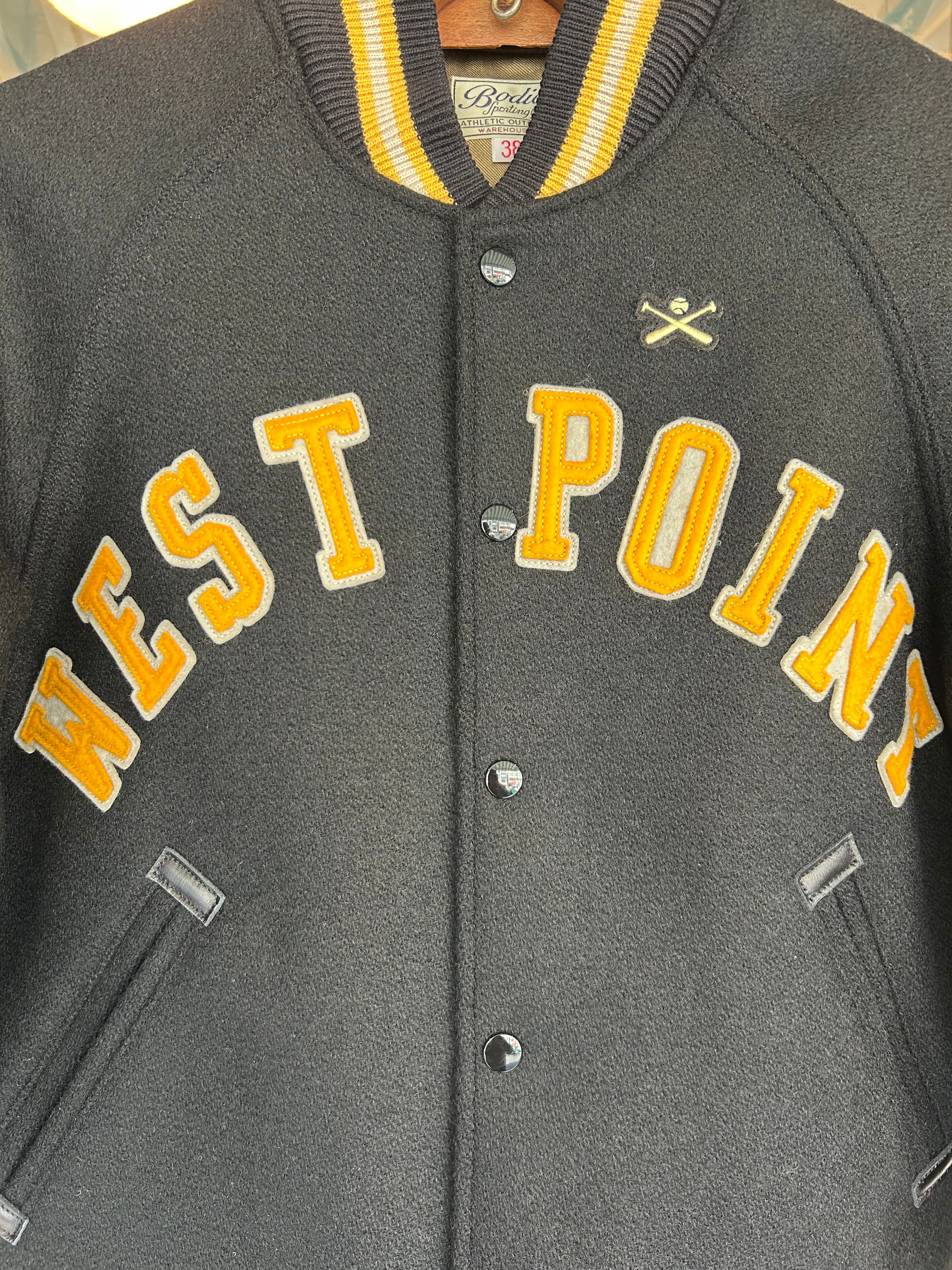 オールメルトンにフェルトでレタリングされた「ウエストポイント」のヴァーシティジャケットです。エリートを養成する士官学校の中でのヴァーシティジャケットは、アメリカでは一祭価値のある一着と言えます。