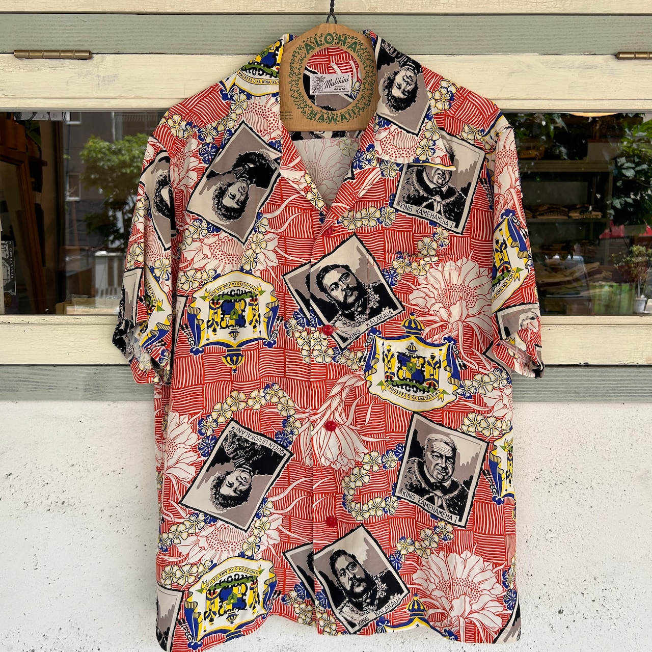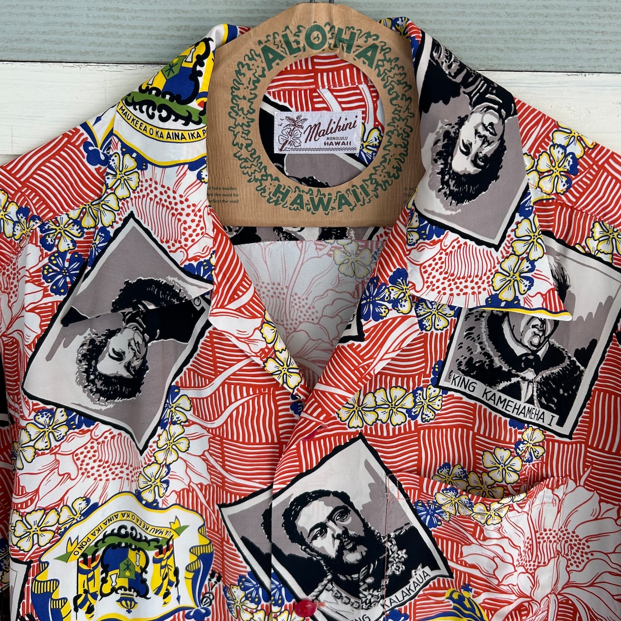 オリジナリティ溢れる柄が多く、コレクターからの人気も高い「マリヒニ」は、1952年創業のマリヒニ・スポーツウェアが展開したブランド。同社を設立したレイモンド・ササキは絵心があり、戦時中からブロック・プリント(手彫りの木版で柄をつけるプリント手法)のテーブルクロスなどをシアーズからの依頼で製作する傍ら、ハンド・ブロック・ショップという店で生地の卸もしていた。1949年頃からはテキスタイルデザイナーのフランク・ヤスタロウ・オダと共にアロハシャツの製造を開始。マリヒニは、レイモンド・ササキが構成を考え、フランク・オダやルイス・ラッセルといった腕利きのデザイナーが柄を起こし、いくつもの人気作を世に送りだしていった。また他のブランドには見られないユニークなデザインにこだわり、和柄を抜染で表現するなど斬新なアイデアで新たなアロハシャツの流行を切り開いたブランドとしても知られている。
