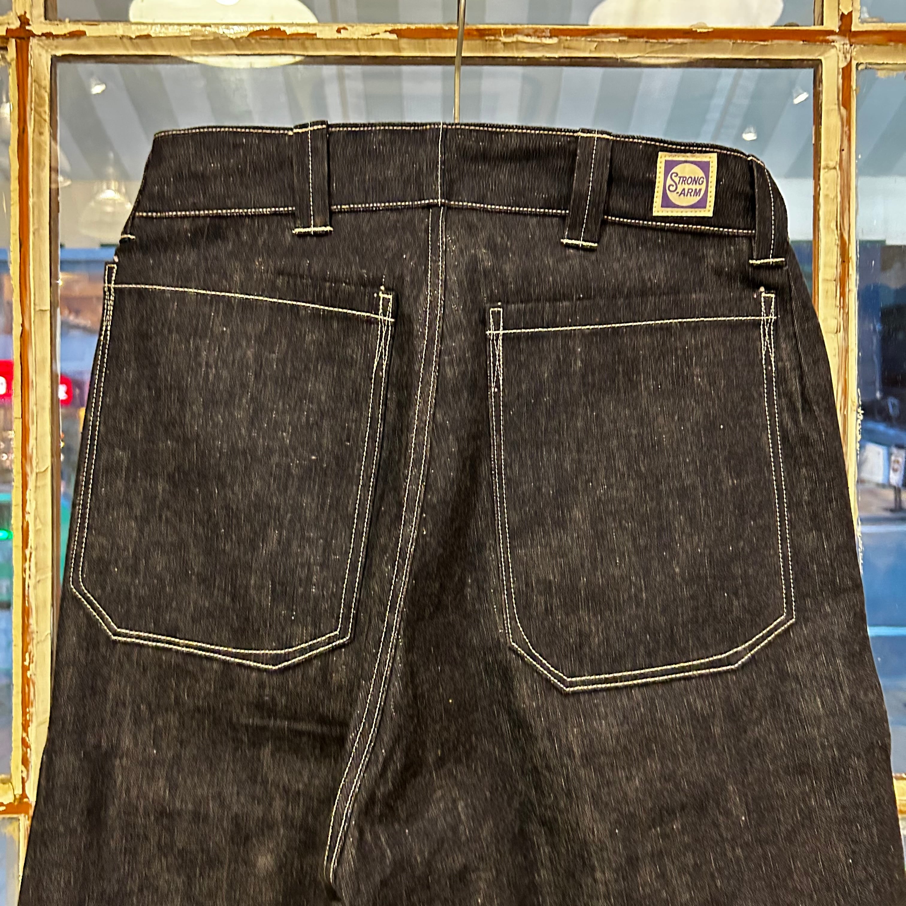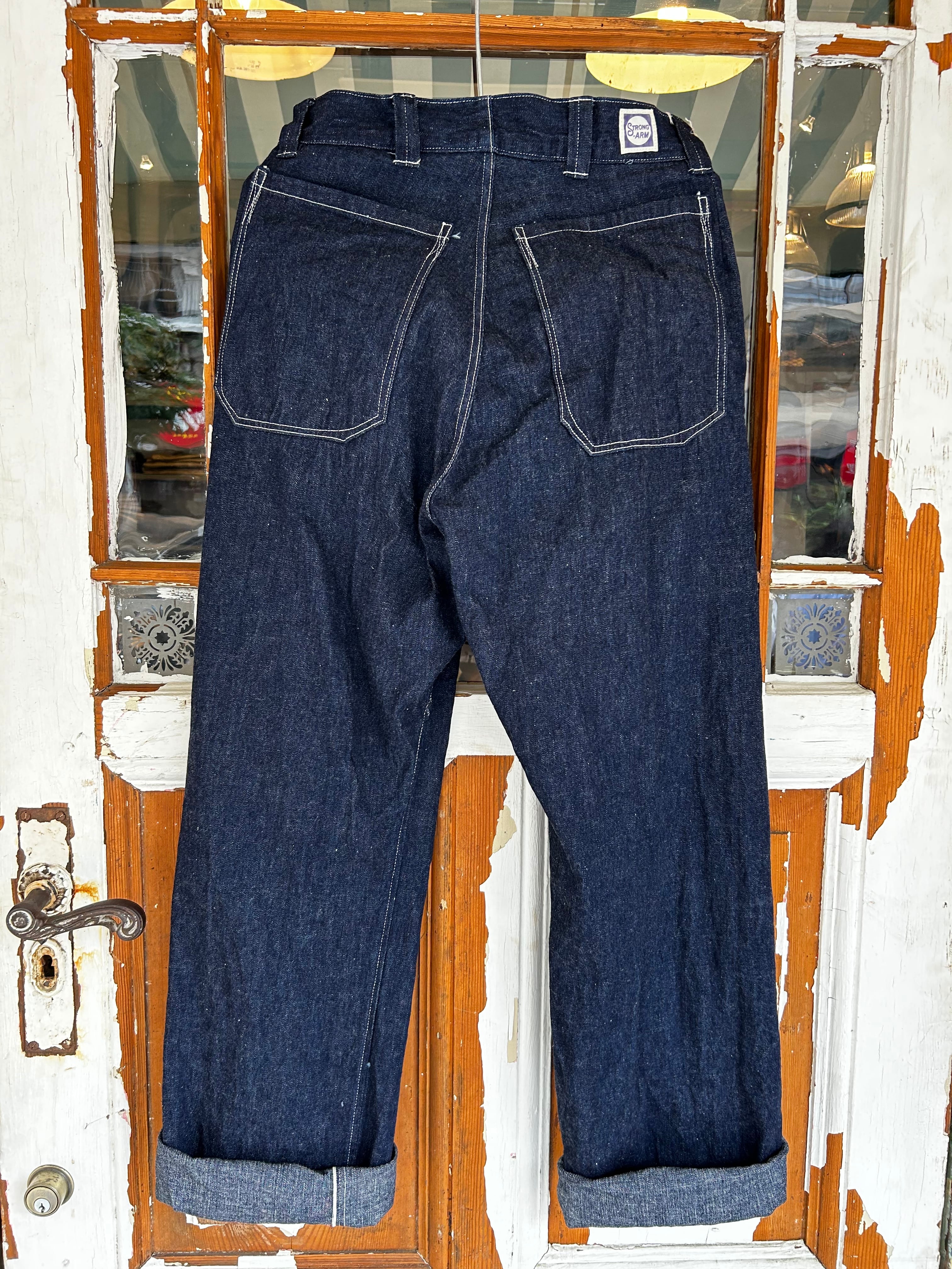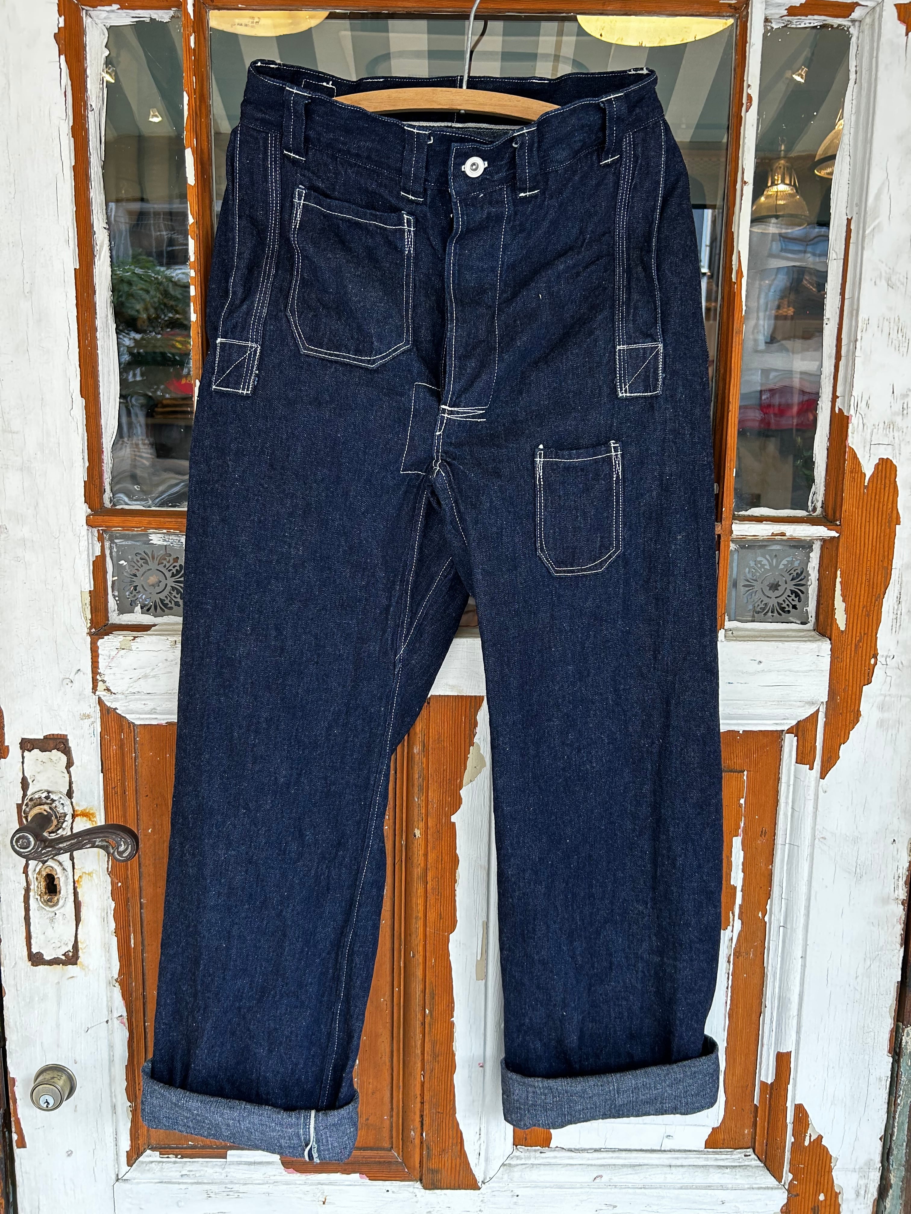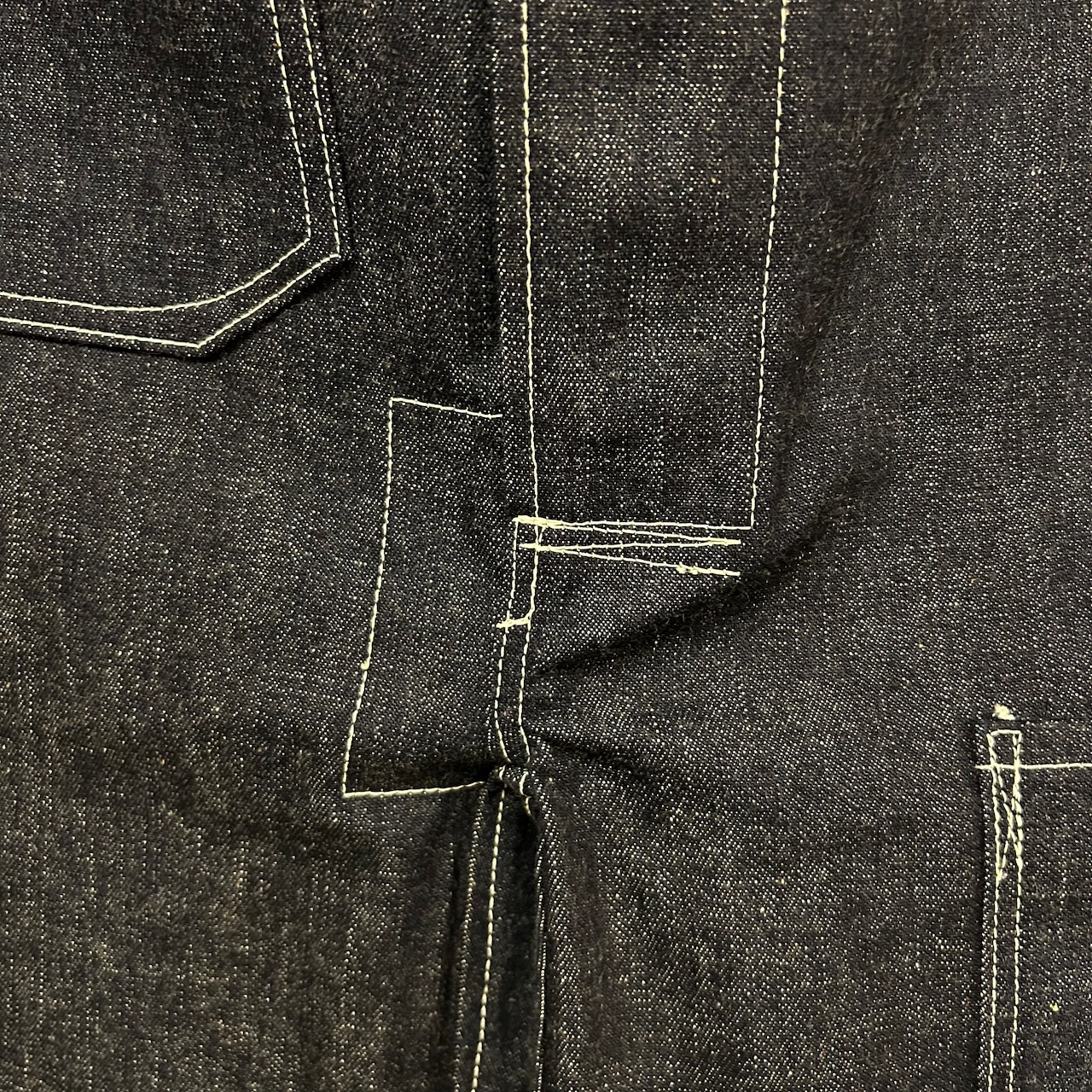 当時、目的をもって作られたと思われるポケットのサイズや形、そして配置はとてもユニークなものです。ヒップから股下にかけて三角マチでわたり幅を出しています。