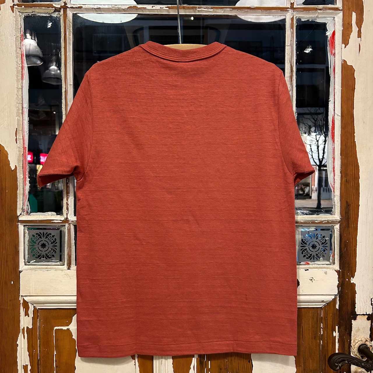 12番のムラ糸で独特の陰影が出るように編まれた生地はシャドウボーダーと呼ばれており、無地でありながらうっすらと横段のようなムラが浮かび上がります。