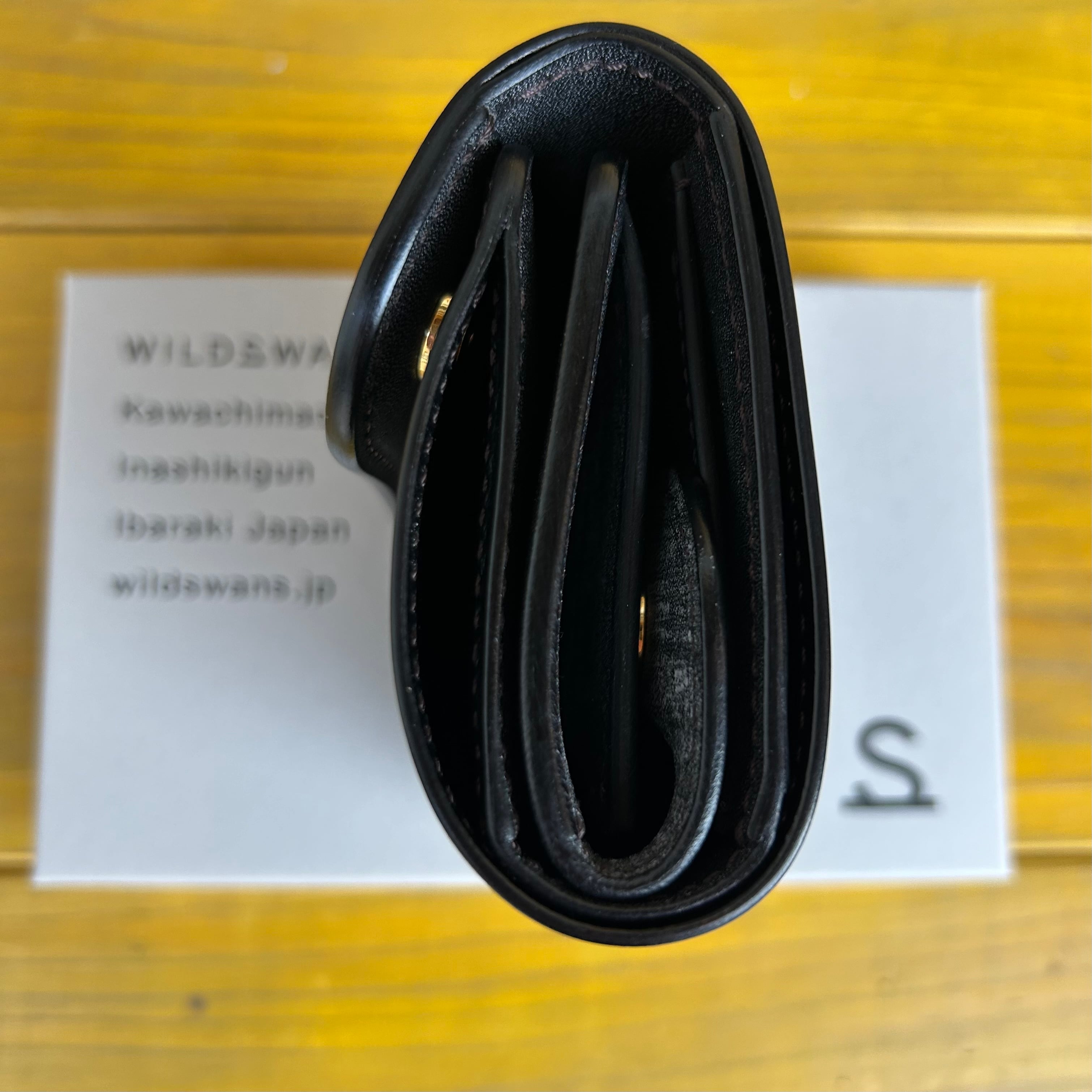 英国の老舗タンナー、ベイカー社のフルグレインブライドルレザーを全面に使用した小型三つ折り財布ENO(イーノ)です。