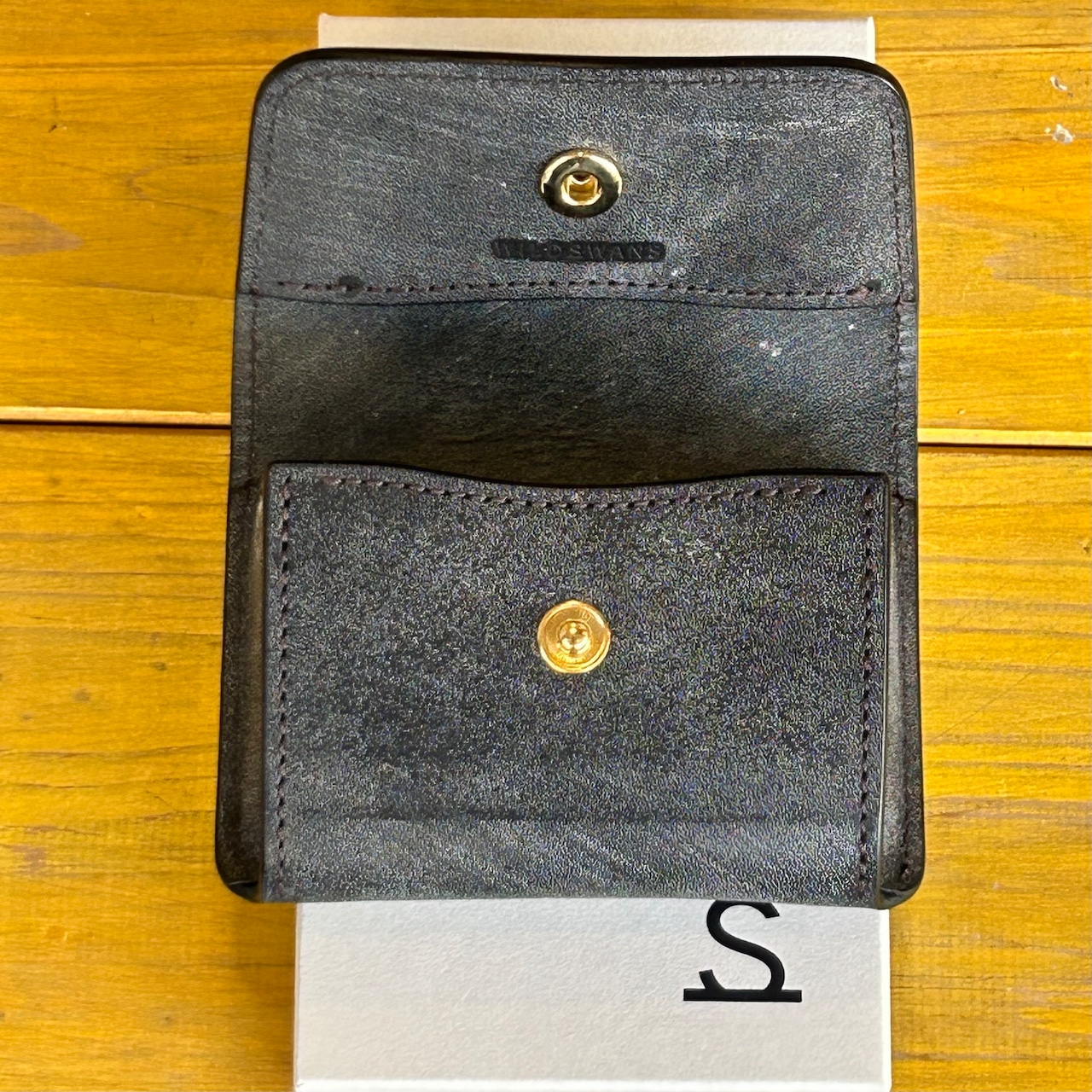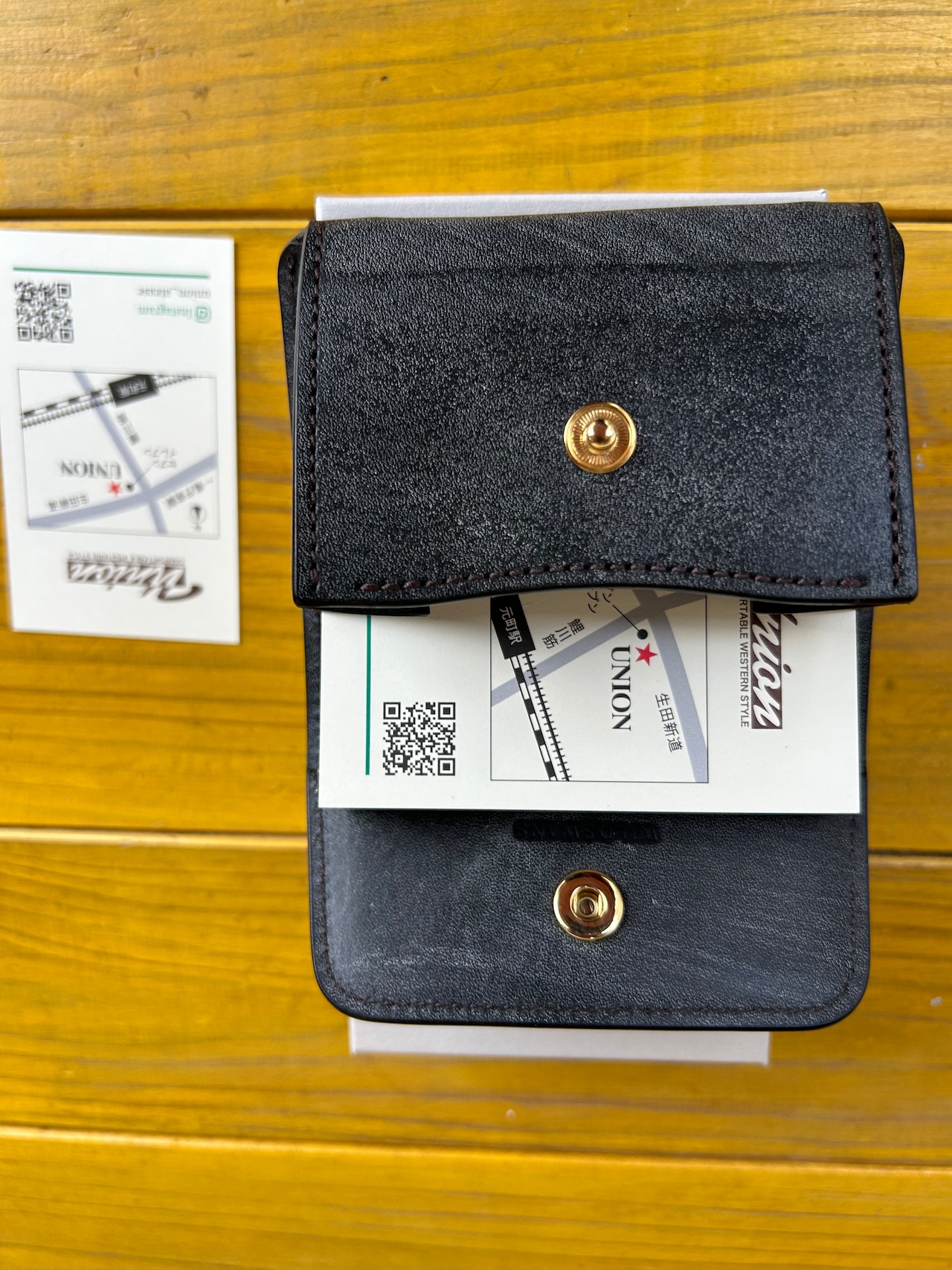 ARTHURは手のひらサイズのシンプルなマルチカードケースです。 WILDSWANSの多機能コインケース・TONGUEなどと同程度のサイズで、非常にコンパクトで手のひらに気持ちよく収まります。 ARTHURのマチは他のWILDSWANS製品では見られないような特殊な形状をしており、収納量に合わせてこのマチが伸縮します。 収納量は紙の名刺では約30枚、クレジットカードなどのプラスチック製カードでは約15枚の収納が可能なうえ、収納部の前身側に4つ折りにした千円札やコイン等もまとめて収納することができます。 フラップにはホックが1点付属しますので、ある程度の量を収納してもしっかりとフラップを閉じることが出来、名刺やカードを保護します。