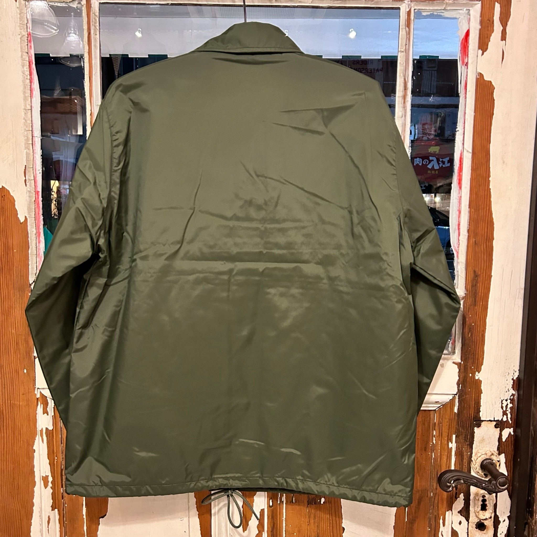 コーチナイロンジャケットの定義はアウトドアとアスレチックに別れます。アウターシェルのナイロンに対して、インナー生地にフランネルが張られていたら、それはアウトドアの用途です。もしも天竺であったらそれはアスレチックウェアです。コーチジャケットとはそれらを総称した品名になっていますが、今回ウェアハウスではナイロンの生地のシャリ感を再現しました。そしてアウトドアのもつ機能性を生かしながら、アスレチックウェアの軽快感を出したものです。